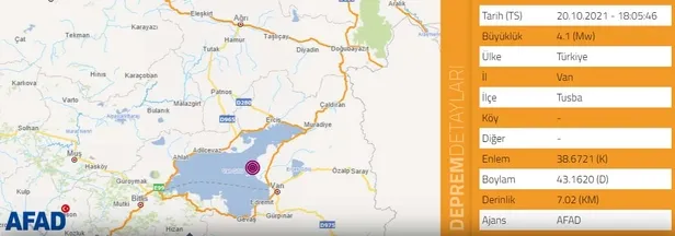 AFADın açıkladığı son dakika haberine göre Vanda saat 1805te 41 büyüklüğünde deprem meydana geldi. 20 Ekim 2021 Çarşamba 1823 AFAD tarafından yapılan son dakika açıklamasında Saat 1759da merkez üssü Vanın Tuşba ilçesinde 38 büyüklüğünde deprem meydana geldi denildi. Gelen son dakika haberine göre.